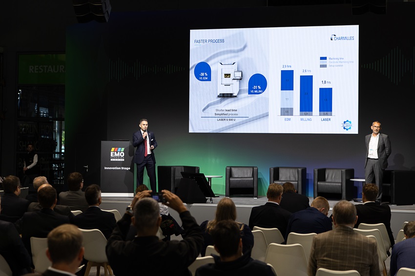 Another reason to celebrate: CHARMILLES, a brand of the UNITED MACHINING Division, was recognized for its breakthrough approach to sustainable high-precision manufacturing efforts with the Green Impact Award. The team led by Philippe Langel, Head of CHARMILLES, and Adrien Rodrigues, Business Support Manager, received the award with a great honour and pride. The winning project, “Precision Redefined with 3DShaping & LASER S 500 U,” combines a unique machining process, 3DShaping, with an ultra-precise and highly dynamic micromachining platform, the LASER S 500 U. Together, they enable the manufacturing of complex micro-geometries with unmatched accuracy and quality — even on features requiring sharp edges and perfect vertical walls. This approach drastically reduces energy consumption, eliminates consumables, and simplifies the overall workflow. It sets new standards in sustainable manufacturing by lowering the environmental footprint, reducing cost per part, and shortening lead times. “Sustainability is not a trend; it’s a responsibility,” emphasized Philippe Langel during the award ceremony. “Our developments demonstrate that precision and ecology can go hand in hand – and that high-end technology can make a real contribution to a more resource-efficient industry.”